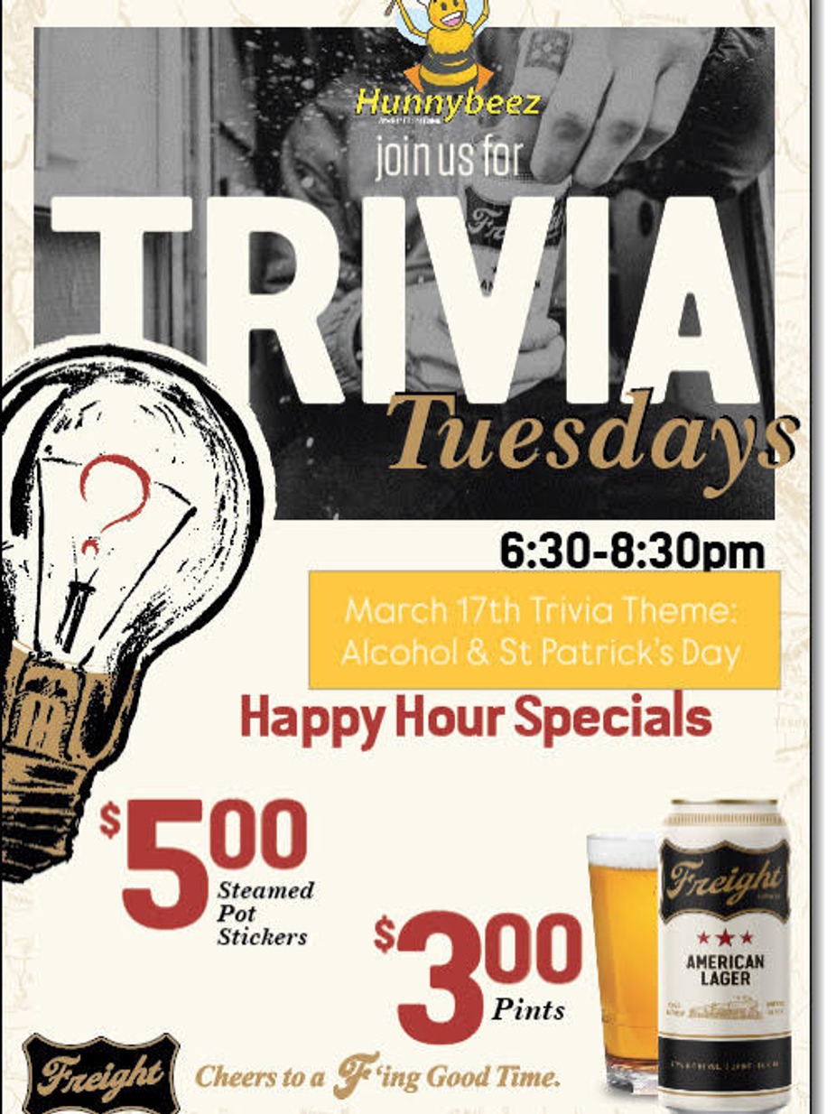Each week we announce the following weeks trivia topic and will post it on our Instagram and Facebook. Come Join the fun solo or in a team.