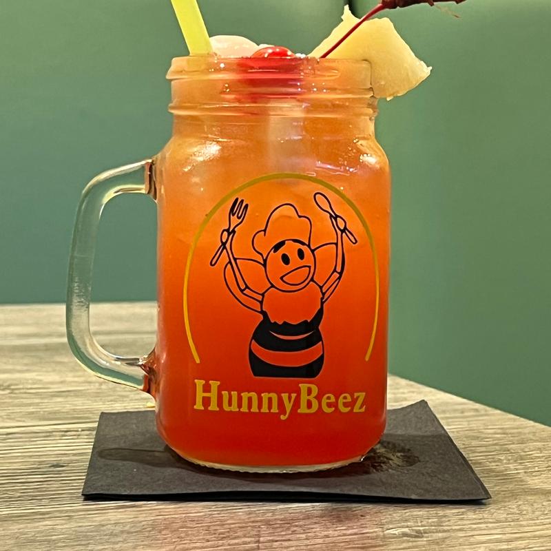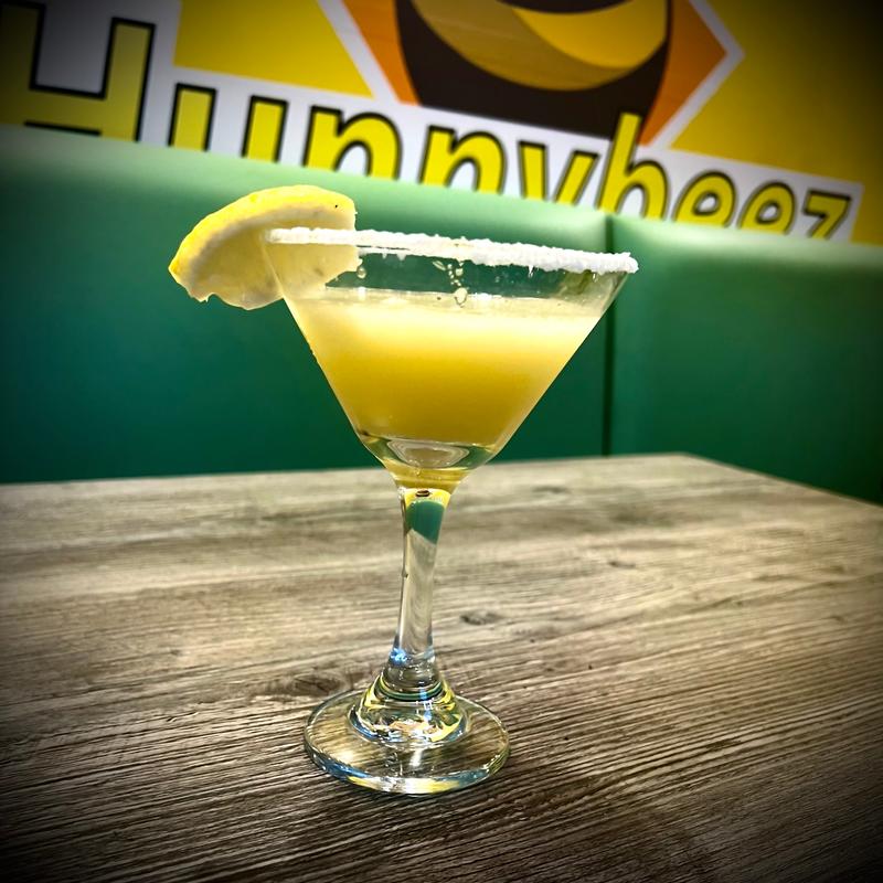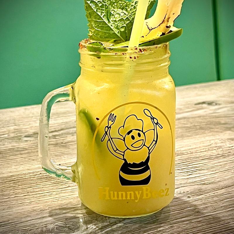 Muddled lemon, pineapple puree syrup, Calamansi juice, and ginger beer. Garnished with a lemon.